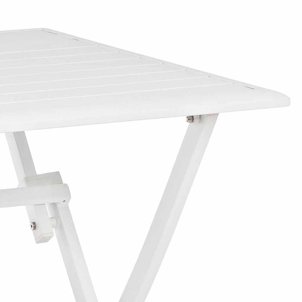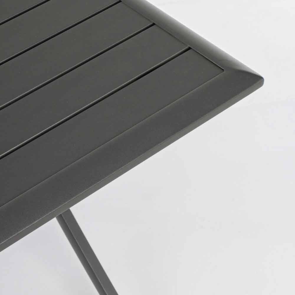 Esstisch im Freien mit klappbarer Aluminiumstruktur.