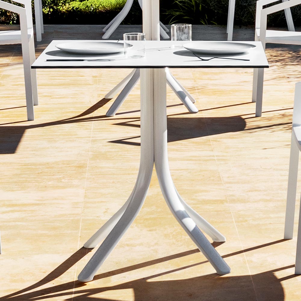 Quadratischer Stehtisch für den Außenbereich mit 4-beinigem Aluminiumdesign und HPL-Platte in 2 Ausführungen, Luxusartikel made in Italy.