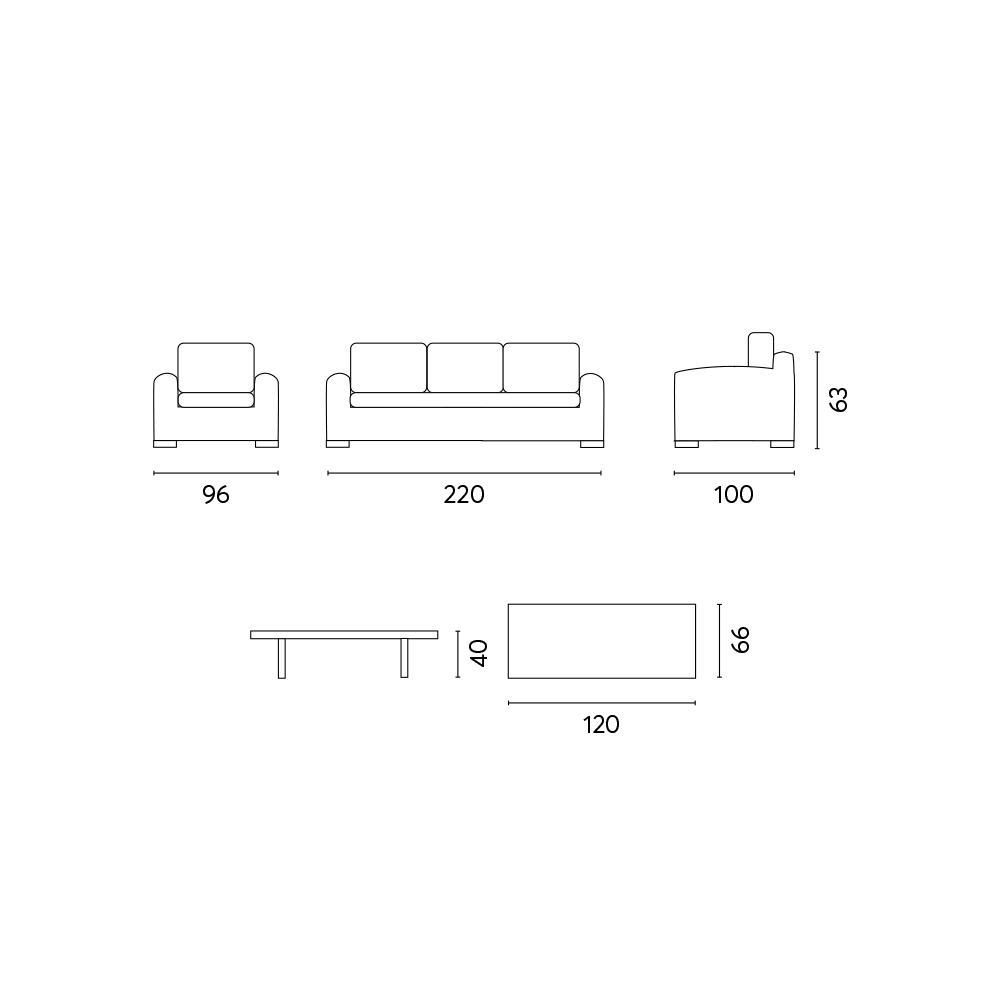 Verfügbare Größen:- Sessel: B 96 x T 100 x H 63 cm;