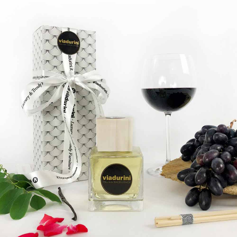 Der Raumduft Stäbchen für Umgebungen mit der Essenz von wildem Most ist ein erhabener Akkord aus Trauben und Cassis , die auf einer Basis aus Holz, Zedernholz und Vanille heiraten.