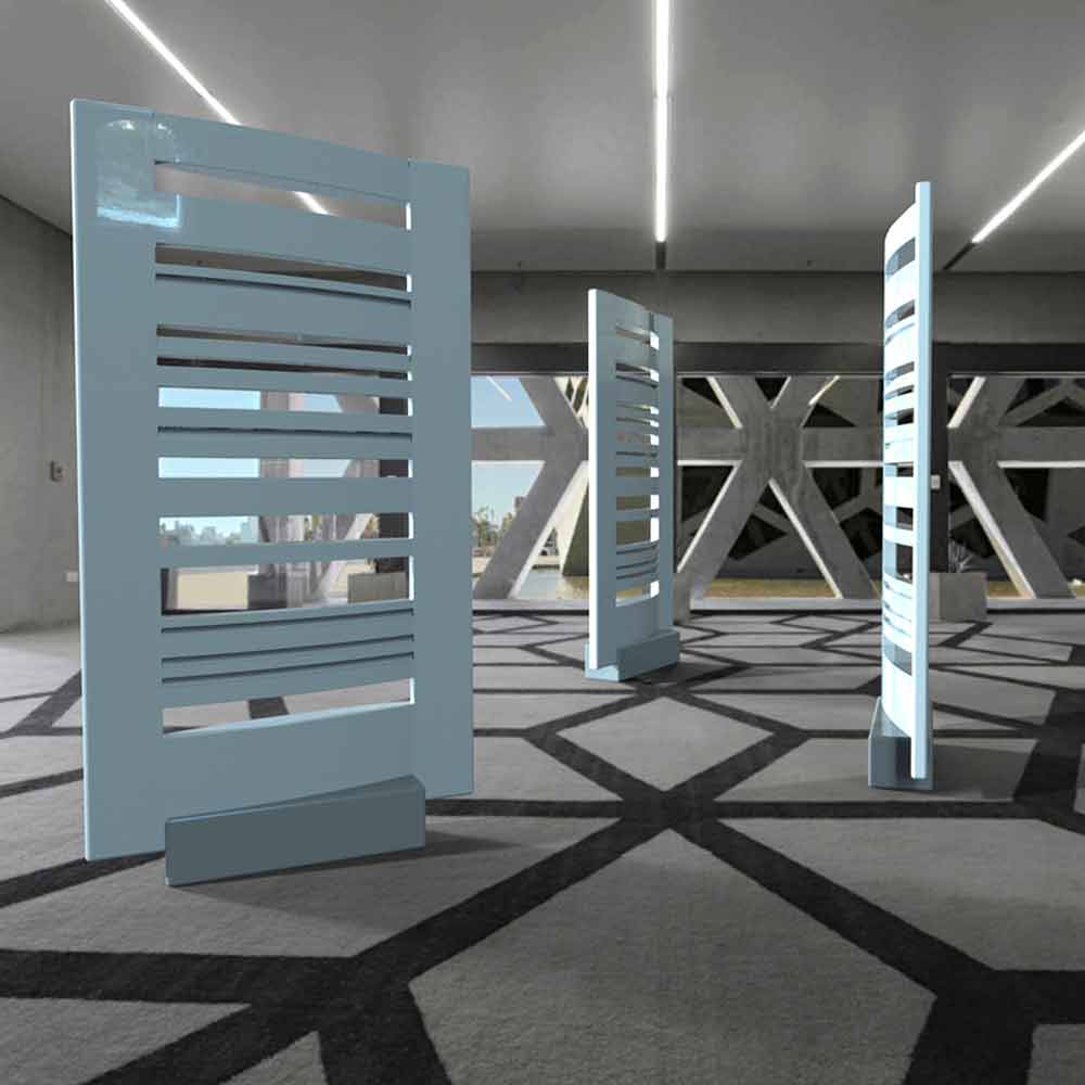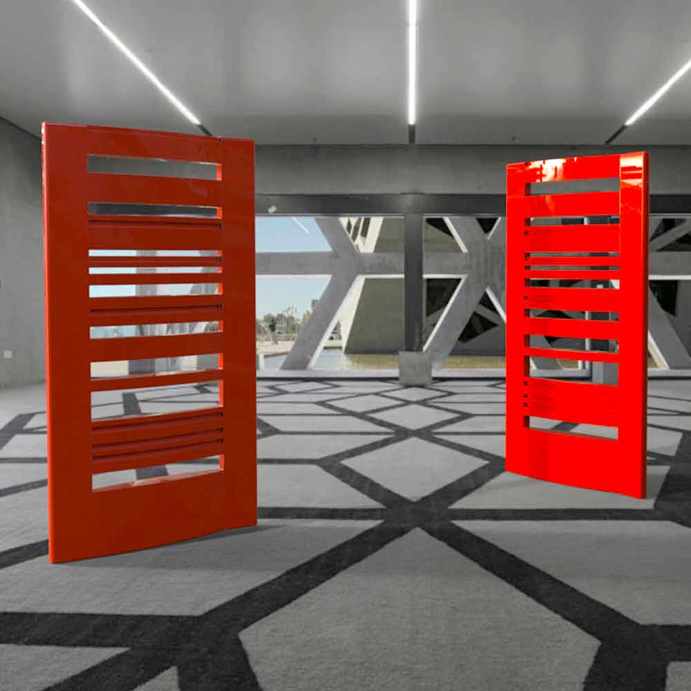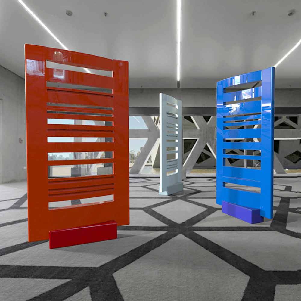Modulare Einrichtungsergänzung, die zum Teilen und Einrichten mit anpassbaren Funktionen entwickelt wurde, um flexible Räume und Wege im Allgemeinen zu gestalten, öffentlich oder privat, drinnen oder draußen, die Privatsphäre und Intimität bieten, ohne auf Atmung und Licht zu verzichten.
