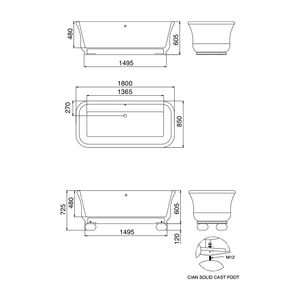 Hinweis: Die Wasserhähne, der Siphon und das Zubehör sind nicht im Preis inbegriffen. Wenn Sie diese kaufen oder Ihre Badewanne in Bezug auf Ausführung und Größe individuell gestalten möchten, zögern Sie nicht, uns über das entsprechende Formular „ Informationen anfordern “ zu kontaktieren.