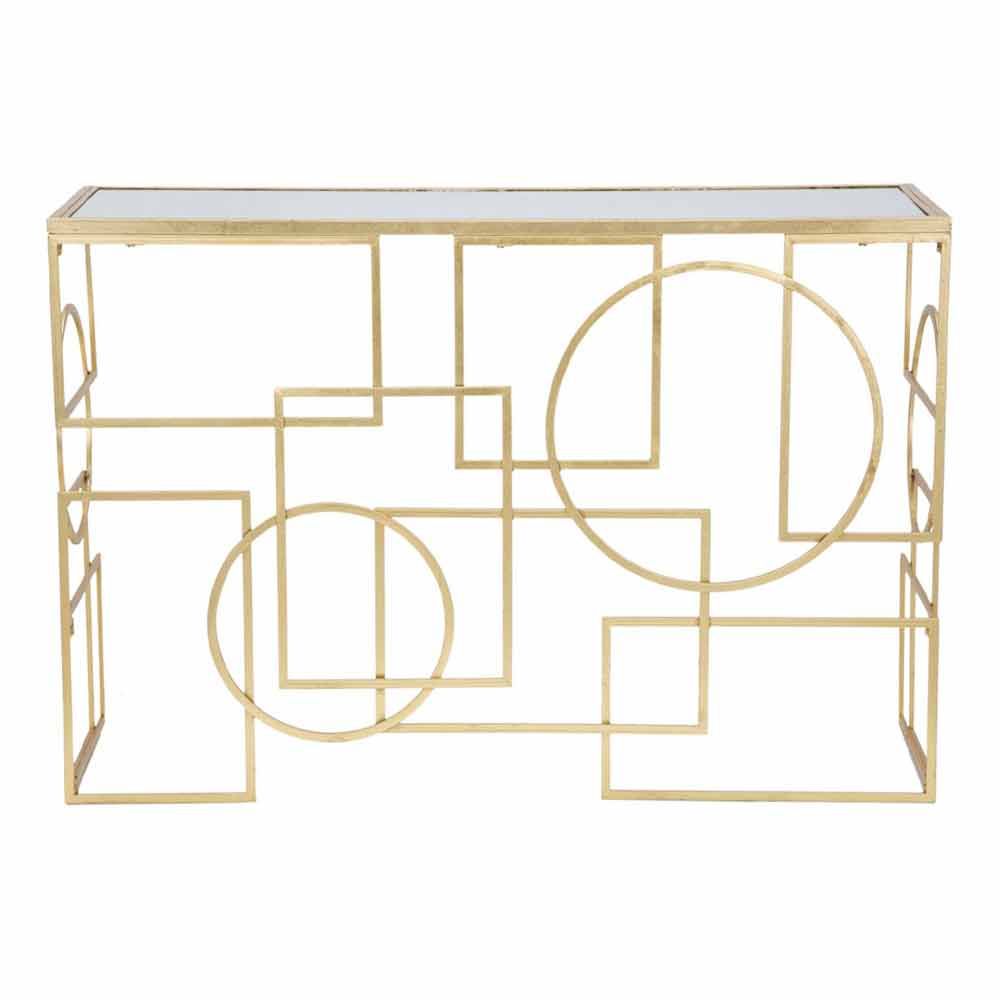 Moderner rechteckiger Konsolentisch 120X41X81 cm aus Eisen mit Spiegelplatte.