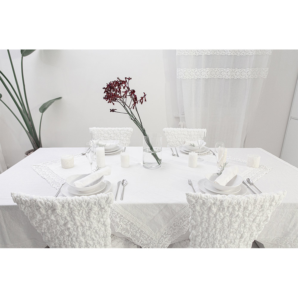 Große rechteckige Tischdecke aus reinem Leinen mit Bordüren mit oder ohne Spitze, luxuriöses handgefertigtes Design made in Italy.