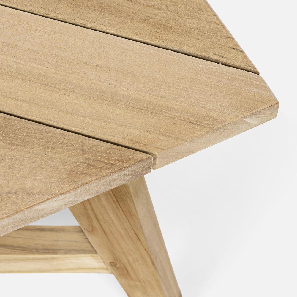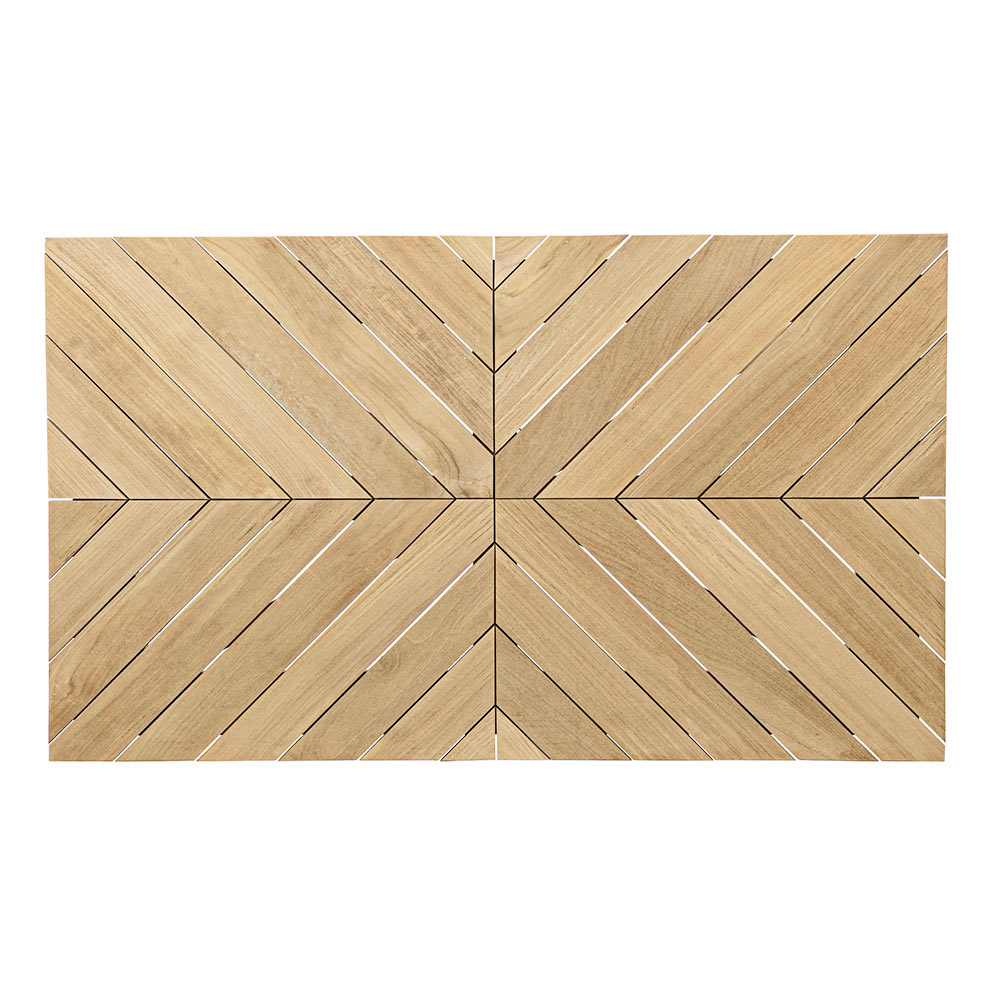 Rechteckiger Couchtisch im Freien mit Platte und Struktur aus Teakholz.