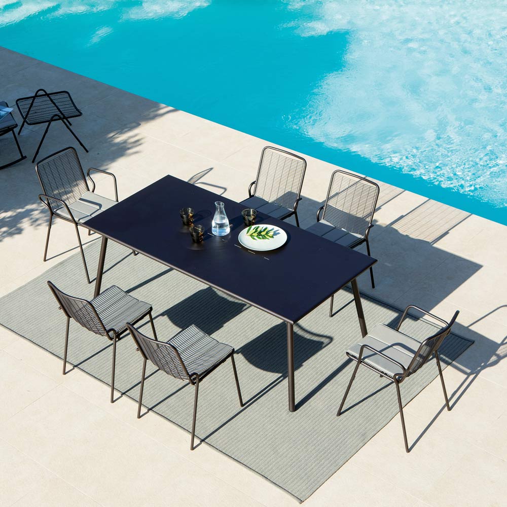 Gartentisch mit verzinkter Stahlkonstruktion, hergestellt von italienischen Handwerkern, die dem Produkt eine 100% Made in Italy- Qualität verleihen. Dieses Einrichtungsaccessoire besteht aus Materialien, die eine hohe Witterungsbeständigkeit gegen Korrosion aufweisen. Sein Design ist modern und raffiniert in seiner Funktionalität und Funktionalität . Die harmonischen und ausgewogenen Proportionen harmonieren mit den schlichten und eleganten Farben.