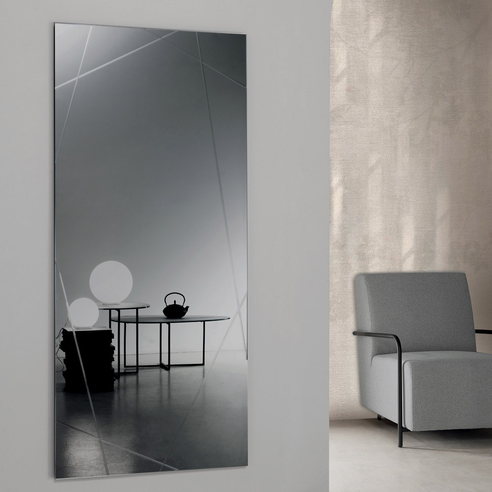 Rechteckiger Designerspiegel, hergestellt in Italien, mit dekorativen Lasergravuren
