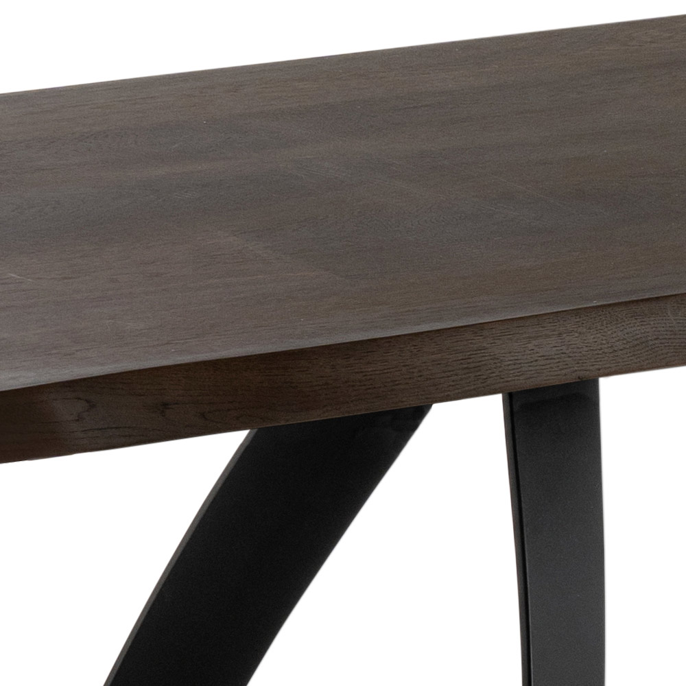 Fester Wohnzimmertisch mit Platte aus Eichenfurnier und massiver Kante , lackierte Metallbeine.