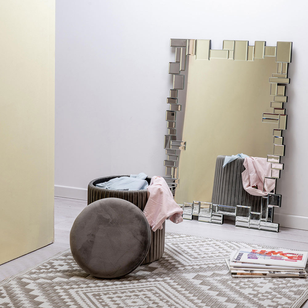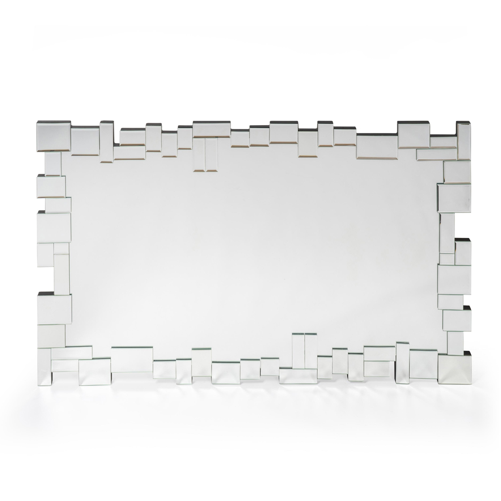 Wandspiegel aus Glas mit geometrischem Rahmen. Diese Ergänzung bringt dank ihres eleganten und raffinierten Stils einen Hauch von Klasse in Ihr Zuhause. Seine Form verleiht dem Raum Bewegung und verleiht der Umgebung ein Gleichgewicht. Perfekt, um das Büro oder Schlafzimmer zu bereichern, ist dieser Wandspiegel eine perfekte Dekoration für jeden Raum.