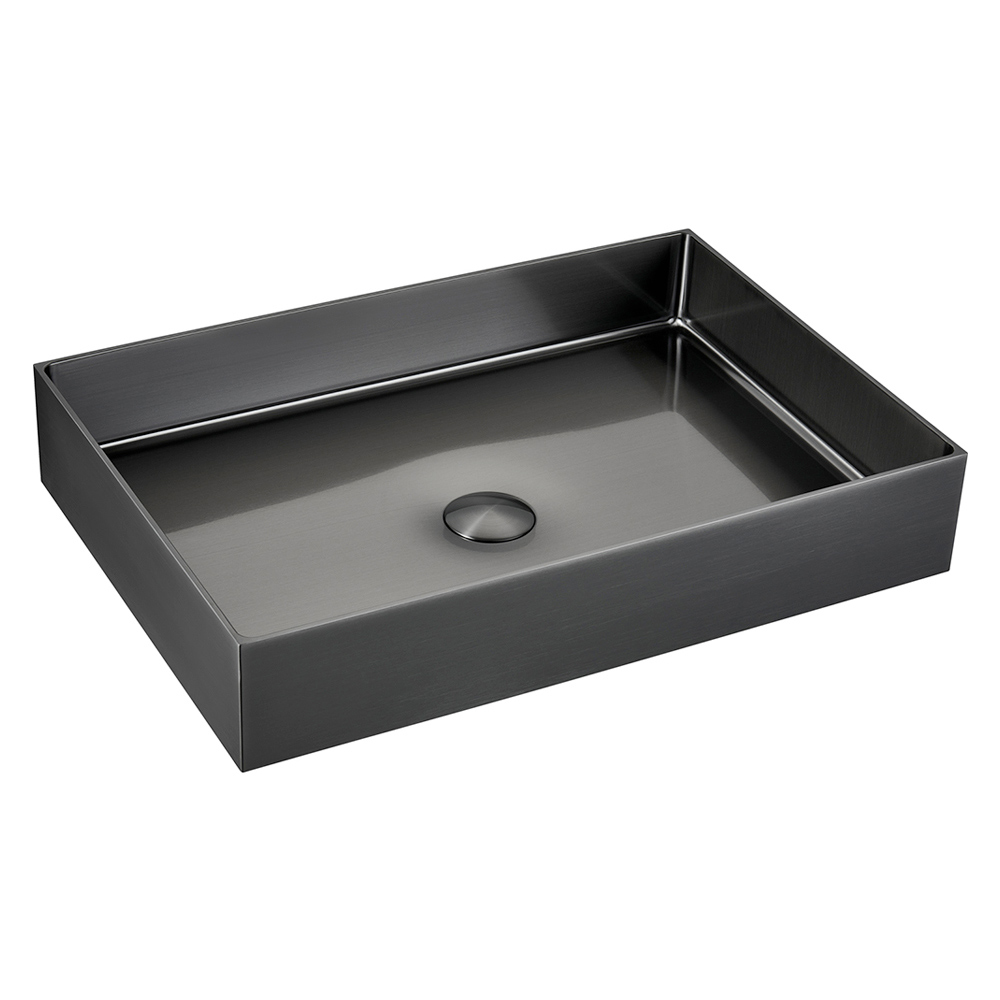 Das rechteckige Aufsatzwaschbecken aus 3 mm starkem Edelstahl SUS 304 ist ein Juwel an Design und Funktionalität. Es ist aus einem einzigen Metallblech gefertigt und bietet eine klare, moderne Ästhetik. Die Endbearbeitung der PVD+Nano-Beschichtung in Kombination mit sorgfältigem Bürsten verleiht dem Objekt ein attraktives und fast rätselhaftes Aussehen und verbessert den Glanz sowie die Widerstandsfähigkeit gegen Flecken und Kratzer. Das Design zeichnet sich durch ausgewogene Formen und ideale Proportionen aus in drei Ausführungen , die sich elegant an jede Umgebung anpassen. Darüber hinaus machen raffinierte Details wie die mitgelieferte passende Ablaufabdeckung und der völlige Verzicht auf sichtbare Schweißnähte dieses Waschbecken zu einem wahren Meisterwerk der Handwerkskunst und des Designs und machen es zu einem herausragenden Stück für Badezimmer mit luxuriösem und modernem Flair.
