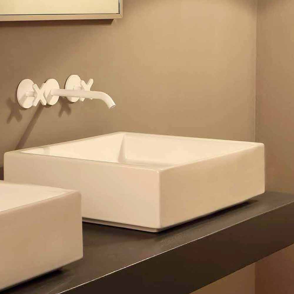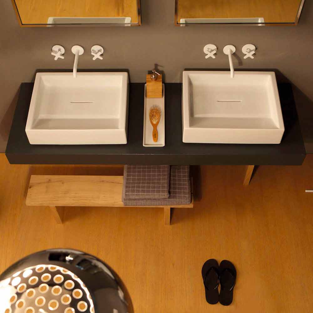Rechteckiges Design-Aufsatzwaschbecken aus Keramik made in Italy Dalia Modernes rechteckiges Design-Waschbecken, inspiriert von den alten öffentlichen Brunnen mit durchgehendem Wasserablauf.