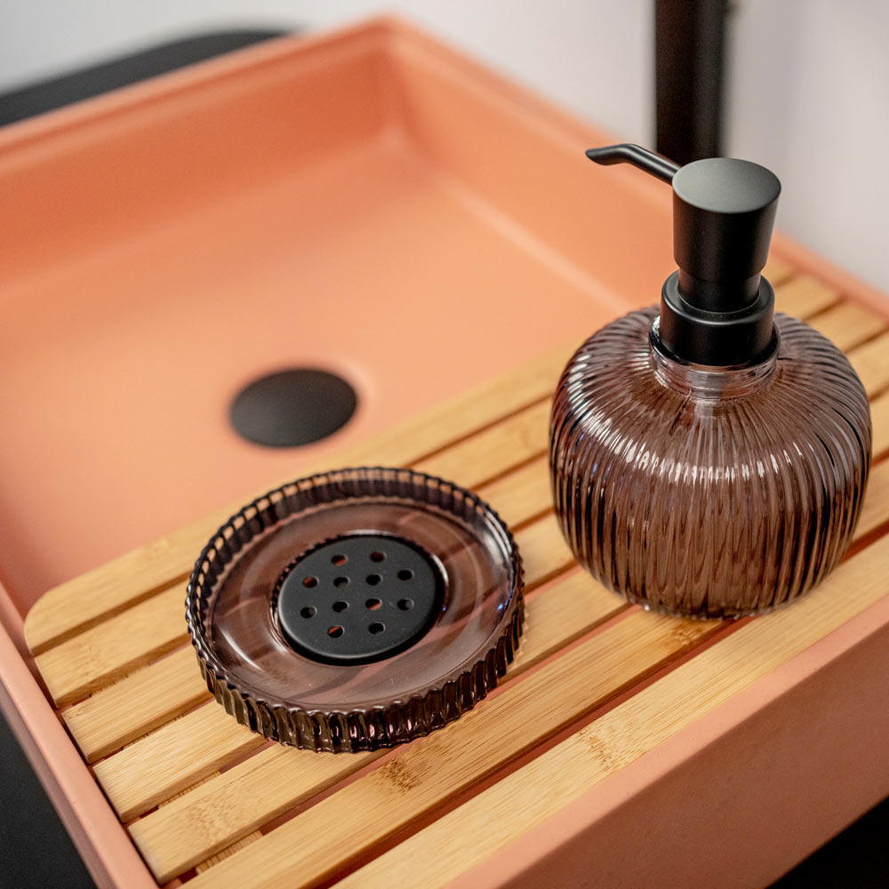 Das rechteckige Terrazzo-Aufsatzwaschbecken verfügt über ein leuchtendes Mali-Orange- Finish und ist ein echtes Stil-Statement in der Welt der Innenarchitektur. Es ist nicht nur ein Statement im Ethno- und Pop- Stil, sondern bietet mit seiner geräumigen Wanne auch Praktikabilität. Die abnehmbare Bambusplatte ist ein geniales Schmuckstück, perfekt um Accessoires und Kosmetika griffbereit aufzubewahren. Dieses Stück ist ideal, um jedem modernen Badezimmer einen Hauch von Farbe und Persönlichkeit zu verleihen und passt perfekt zu den beliebtesten Wandverkleidungen. Ein Objekt, das nicht unbemerkt bleibt und bereit ist, zum visuellen Mittelpunkt Ihres Badezimmers zu werden.