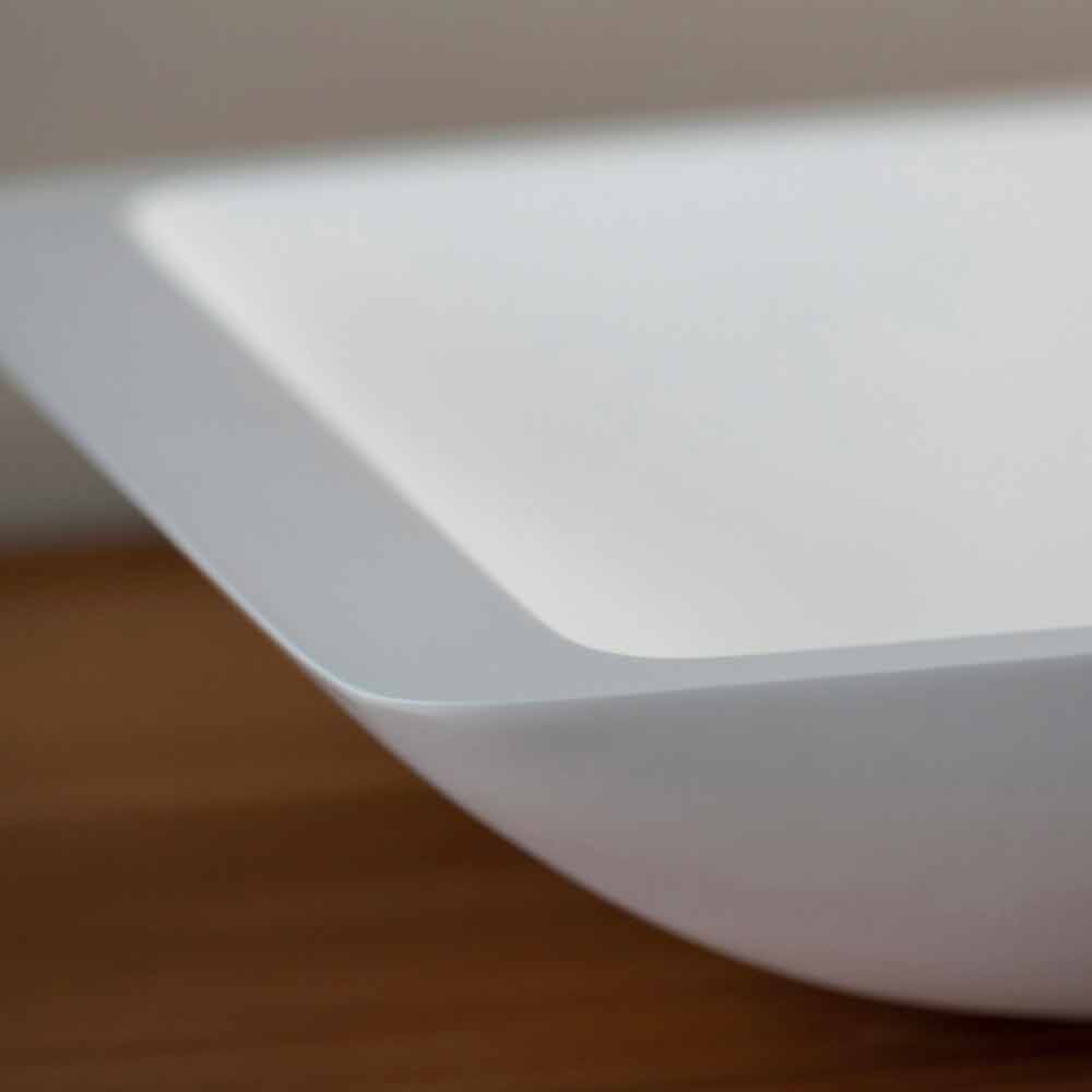 Scheint für Wasser geboren zu sein! Schön und einladend ist es auch äußerst praktisch und komfortabel. Aus Solid Surface Betracyl® total white gefertigt, garantiert es eine einfache Reinigung und Wartung. Betracyl® ist ein extrem leistungsstarkes Material, das die Herstellung von porenfreien Spülen ermöglicht, die gegen Flecken und aggressive Mittel beständig sind.