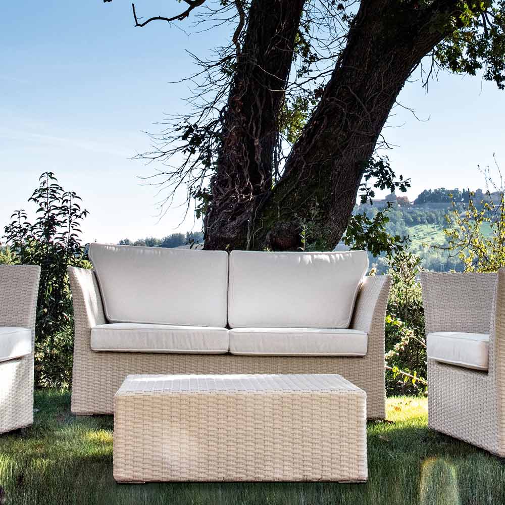 REHAU Polyrattan Garten-Lounge-Set und weiße Kissen - Pepe