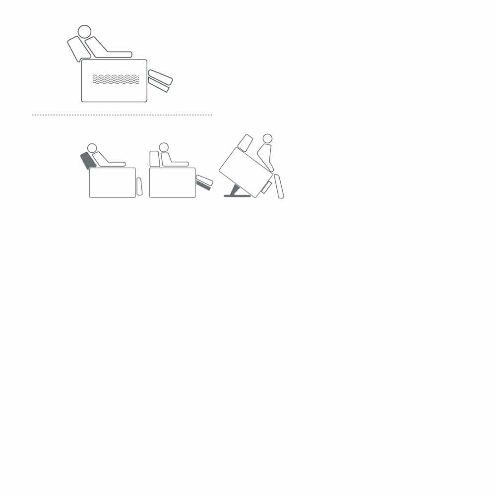 Die entwickelten Mechanismen bieten mehrere Funktionen und die Möglichkeit, in bestimmten Sitzbereichen positioniert zu werden, und ermöglichen die Zusammenstellung von Entspannungssesseln, Massagestühlen und Hebesesseln, deren Optionen den Bedürfnissen jedes Kunden entsprechen.