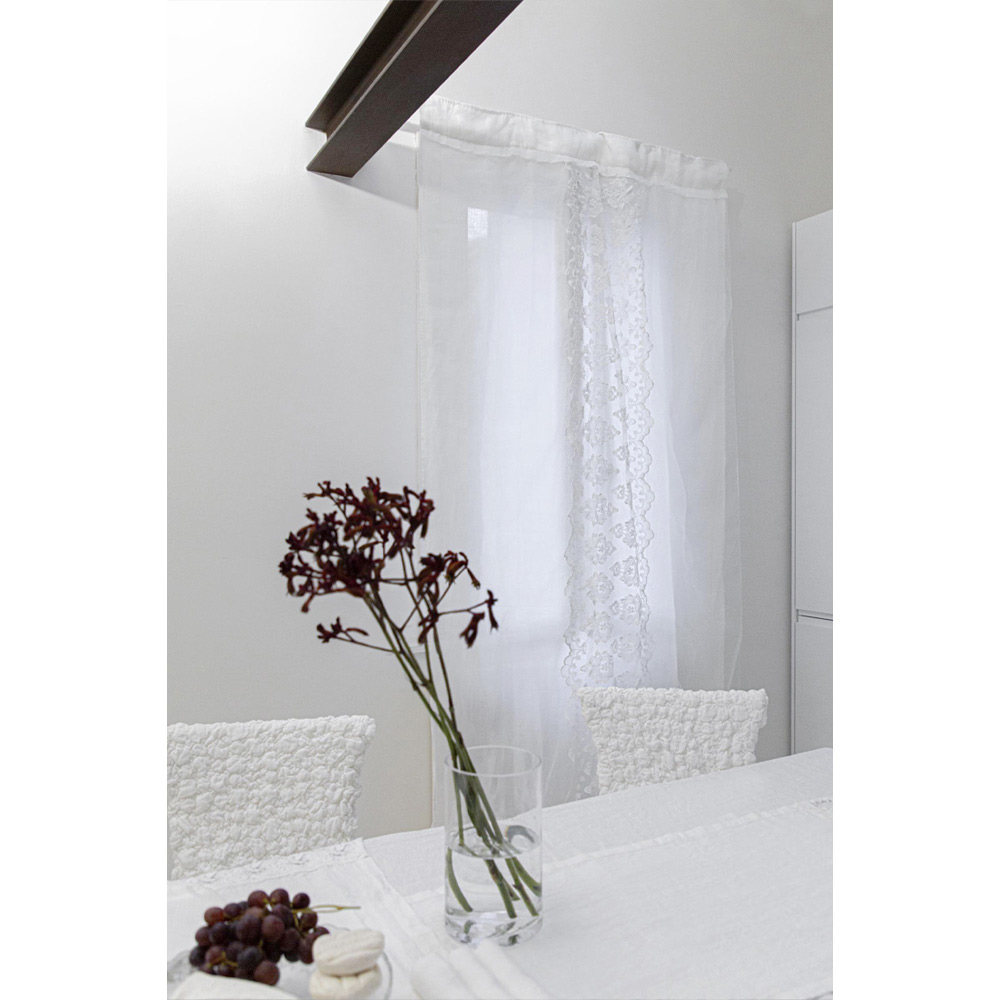 Der Wert der Tradition verbindet den modernen Lebensstil mit diesem natürlichen weißen Licht Leinenvorhangmit Organza und vertikalen Gothic Stickerei im zentralen Teil und Prädisposition für einen Stock im oberen Teil mit Organza Dekoration. Leichtigkeit , Freiheit, Eleganz und Reinheit sind die Schlüsselwörter dieses Produkts mit edlem Charme und feinem Stoff .