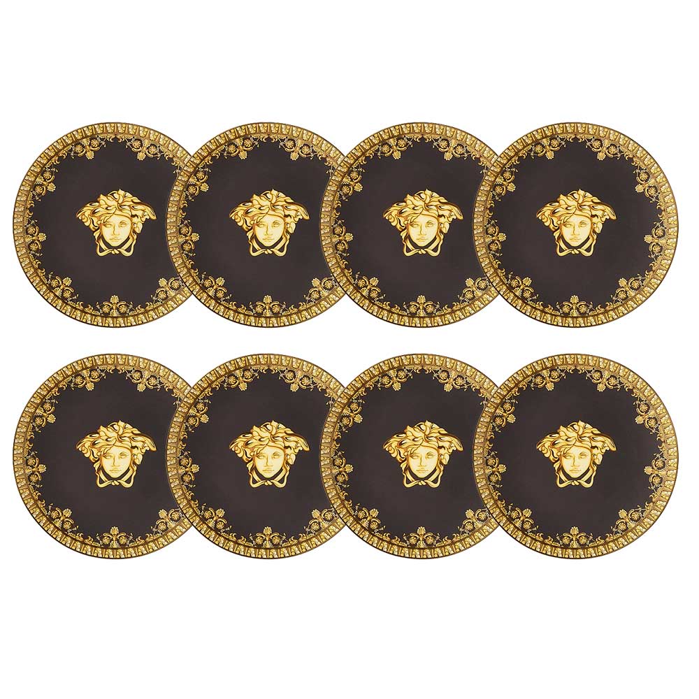 Der Teller I Love Baroque von Versace aus feinem Porzellan ist die Essenz von Raffinesse und zeitlosem Luxus . Das raffinierte Design zeichnet sich durch einen tiefschwarzen Hintergrund aus, der durch einen Rand mit goldenen Barockmotiven bereichert wird, die die künstlerische Tradition des Hauses verkörpern. In der Mitte dominiert das ikonische Gesicht der Medusa , ein Symbol für Macht und ewigen Charme, und verleiht diesem Meisterwerk einen königlichen und unverwechselbaren Charakter.