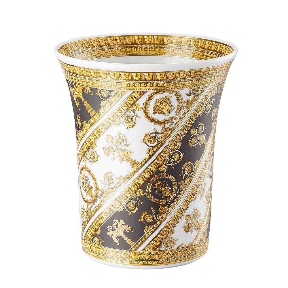 Die Vase I Love Baroque von Versace aus feinem Porzellan ist ein perfekter Ausdruck von zeitlosem Luxus und Raffinesse . Ihr raffiniertes Design zeichnet sich durch goldene Barockmotive aus, die sich auf einem schwarz-weißen Hintergrund verflechten und einen eleganten und fesselnden Kontrast bilden. Jedes Detail, von den ornamentalen Friesen bis zum ikonischen Medusa- Symbol, spiegelt die Exzellenz und Handwerkskunst des Hauses wider.
