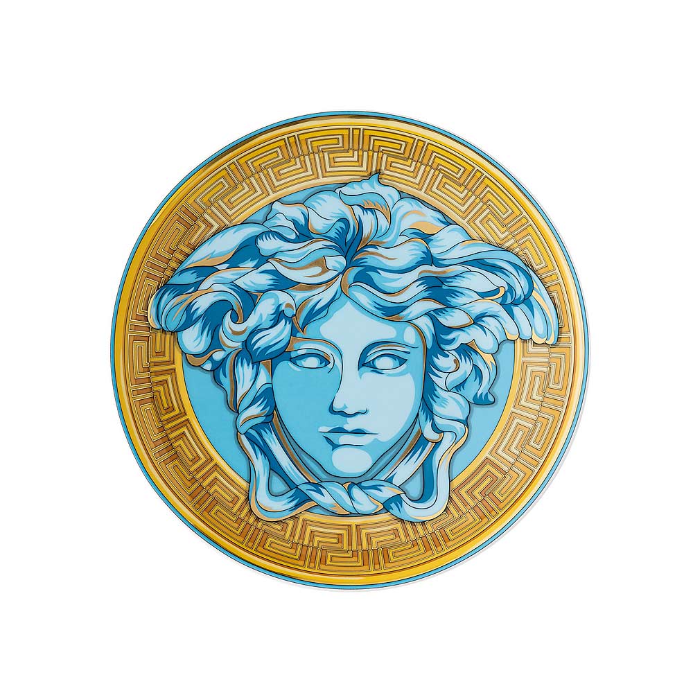 Die Versace Medusa Amplified Brotteller aus kostbarem Porzellan verkörpern eine perfekte Balance zwischen Kunst und zeitgenössischem Luxus . Das kühne Design hebt das legendäre Gesicht der Medusa hervor, das ikonische Symbol des Hauses, umgeben von einem lebendigen goldenen griechischen Motiv und zarten Farbtönen, die eine moderne und raffinierte Note verleihen.