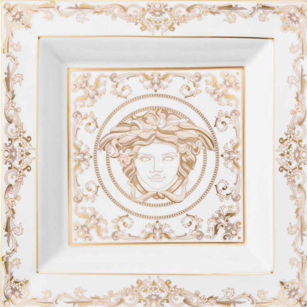 Durch die Dekorationen aus Symbolen, antiken Elementen und Bezügen zur Mythologie werden verschiedene imaginäre Szenarien hervorgerufen. Versace gelingt es, mit Porzellan, Kristall und Besteck von Rosenthal luxuriöse Fantasiewelten in einer Qualität zu erschaffen, die höchsten Ansprüchen gerecht wird. In jedem einzelnen Produkt werden hochwertige Materialien meisterhaft verarbeitet. Versace schafft es immer, eine Brücke zwischen der Vergangenheit und der Ultramoderne zu schlagen und so zeitlose und völlig zeitgenössische Motive zu schaffen. Die Harmonie dieser Motive ist in den Artikeln, die in Zusammenarbeit mit Rosenthal entstanden, perfekt erkennbar.