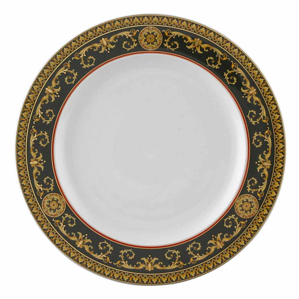 Rosenthal Versace Medusa Rosso 27cm Speiseteller aus Porzellan Der fantastische Essteller von Versace ist Teil der Linie Medusa Rosso , die aus zwei bzw. drei Farbtönen besteht: einem eleganten Rot und dem sehr kostbaren Gold und Schwarz; in Kombination ergeben diese ein raffiniertes Motiv, das Sie in faszinierende und ferne Epochen entführt. Der Kopf der Medusa ist das Wahrzeichen der Versace-Kollektion und macht dieses Service zu einem Klassiker, zugleich aber zu einem Symbol für Luxus auf der modernen Tafel. Achtung: Nicht in der Spülmaschine reinigen, bitte per Hand spülen!