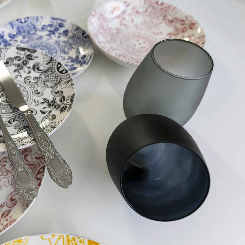 Eine Reihe von Bechern mit einem ethnischen und sehr glamourösen Geschmack und leuchtenden Farben , die das Set verschönern und ein einzigartiges und zartes Lichtspiel erzeugen können. Dieser Service kann uns über die Jahre zurückversetzen und den authentischsten und authentischsten Geschmack der Vergangenheit wiedererleben. Der Retro-Geschmack wurde überarbeitet, aber in einem modernen Schlüssel. Die Mischung aus intensiven Farben mit raffinierten Details gibt das Leben eine sehr elegante und raffinierte mise en place, in der Lage , alle Gäste mit seinem einzigartigen und delikaten Stil zu erobern.