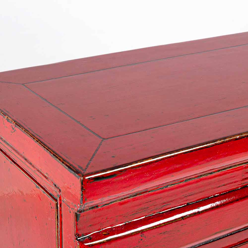Roter Konsolentisch aus Ulmenholz mit 3 Schubladen im Vintage-Design.