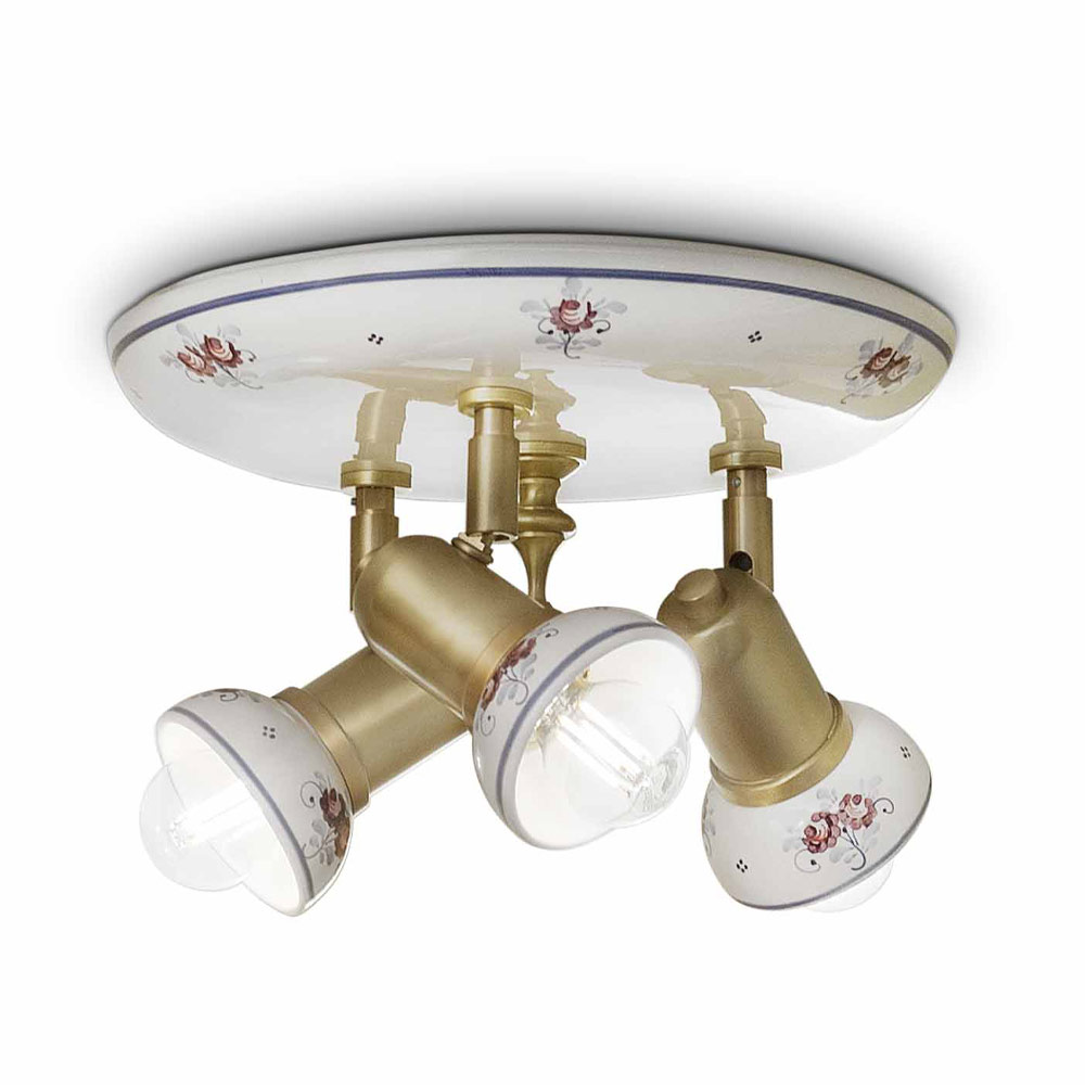 NB : Die Glühbirne ist nicht im Lieferumfang enthalten. Die Dekorationen können individuell angepasst werden, für weitere Informationen kontaktieren Sie uns, indem Sie das entsprechende Formular ausfüllen. Da es sich um handgefertigte Artikel handelt, können die tatsächlichen Farben von den auf den Fotos gezeigten abweichen.https://www.viadurini.ch//data/prod/img/plafoniera-rotonda-3-faretti-in-ottone-e-ceramica-dipinta-a-mano-savona.jpg432.12539619InStockVintage DeckenleuchtenFerroluce000.02021-12-22 11:35:42Made in Italy