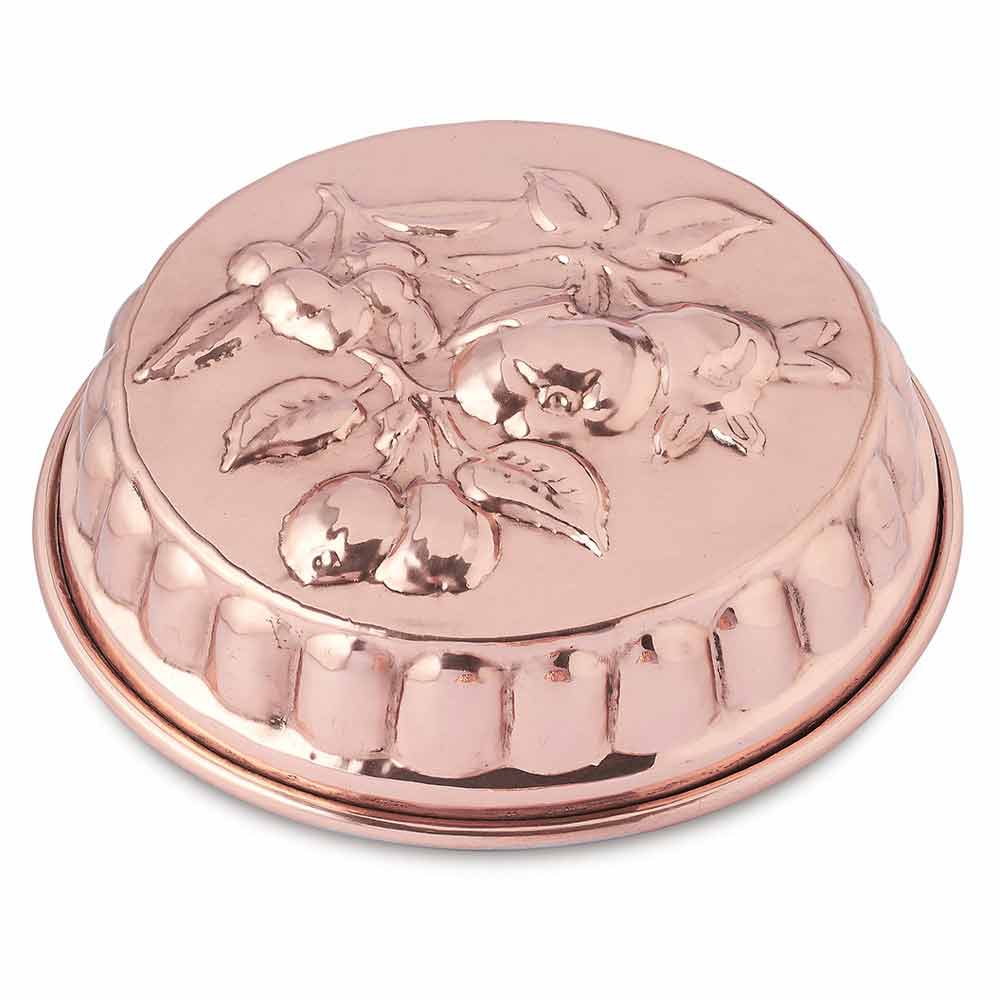 Runde Backform mit Fruchtdekor in Handarbeit made in Italy aus verzinntem Kupfer.