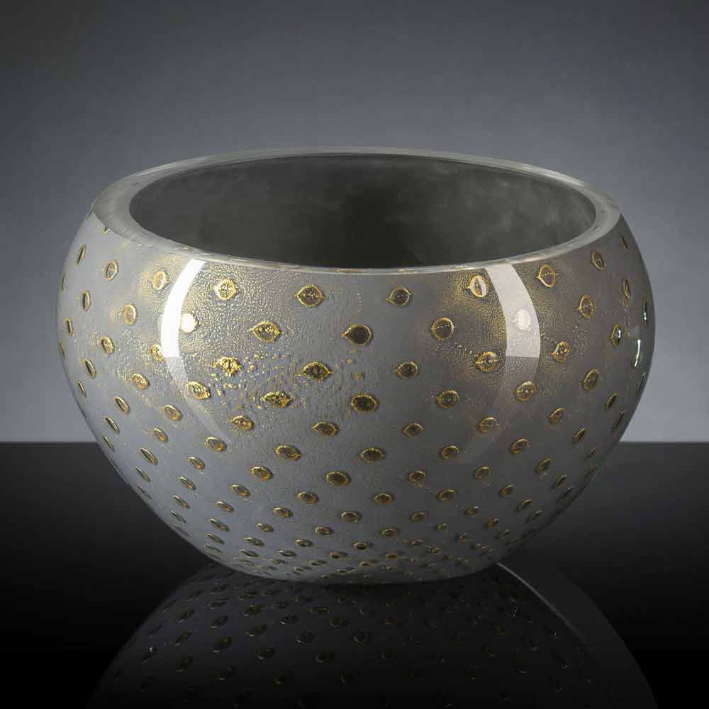 Runde Indoor-Vase aus farbigem Murano-mundgeblasenem Glas Made in Italy.
