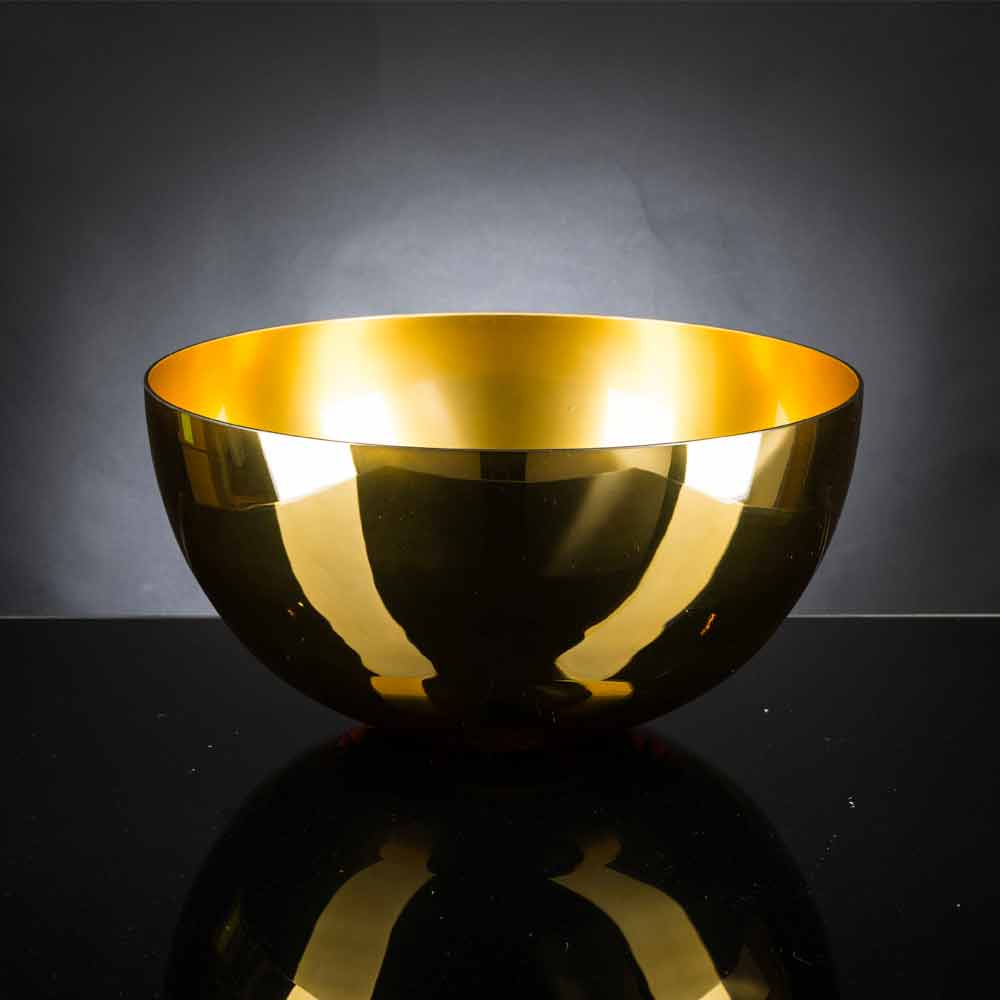 Runde Ziervase Made in Italy aus mundgeblasenem Glas mit 24 Karat glänzendem Goldfinish, handgefertigt von Glasmachermeistern, die seit Generationen Experten auf diesem Sektor sind. Seine Besonderheit wird durch die handwerkliche Produktion repräsentiert, die seinen Wert und Wert erhöht, um ein exklusives und hochwertiges Ergebnis zum Leben zu erwecken. Die besondere gewählte Farbe macht es zu einer äußerst eleganten Ergänzung, die in der Lage ist, die umgebende Einrichtung mit Persönlichkeit zu bereichern. Ein ideales Design für die unterschiedlichsten Umgebungen, von der Wohnungseinrichtung bis hin zu Hotels, Restaurants, Objektbereichen, Spas, aber auch als Rahmen für Veranstaltungen und Hochzeiten.