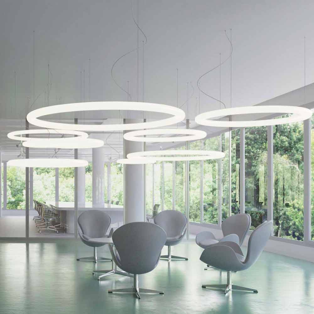 Das Design dieses modernen Möbelstücks wird durch seinen Namen Giotto perfekt beschrieben. Tatsächlich ist seine Form ein perfekter Kreis, der sich durch eine essentielle Geometrie auszeichnet, aber mit einer großen visuellen Wirkung, die durch die LED bereichert wird, die dank eines homogenen und einladenden Lichts perfekte Lichteffekte sowohl für Vertragsräume als auch für private Umgebungen erzeugt. Dank der Möglichkeit, die Höhe des Produkts anzupassen, ist es möglich, es individuell für eine diskretere, aber immer originelle Lösung zu verwenden, oder sogar durch die Kombination der verschiedenen verfügbaren Größen, um wunderbare personalisierte Kompositionen zu schaffen und so einzigartige und originelle Spiele zum Leben zu erwecken Licht im Raum.