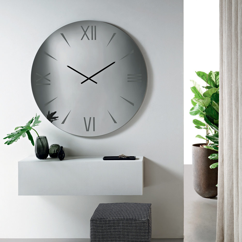 Designer-Wanduhr aus Italien, aus Spiegelglas mit lasergravierten Ziffern