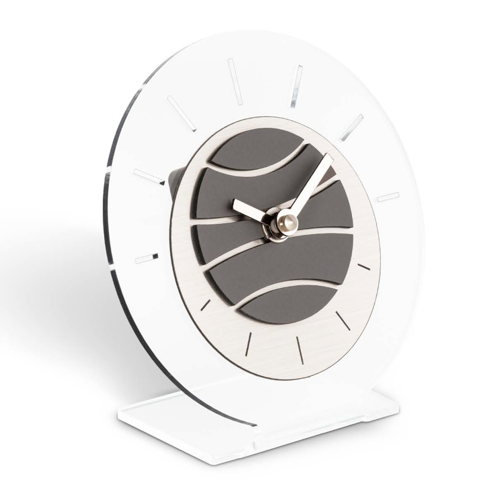Tischuhr aus transparentem Methacrylat hoher Dichte und Reinheit, hergestellt in Italien