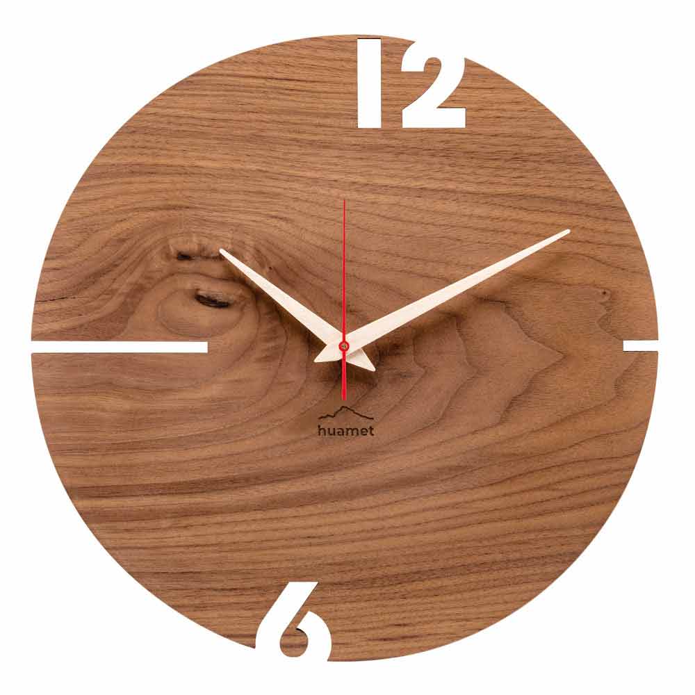 Runde Wanduhr in modernem Design aus Eiche, Kiefer oder Walnuss; handgefertigt in Italien.