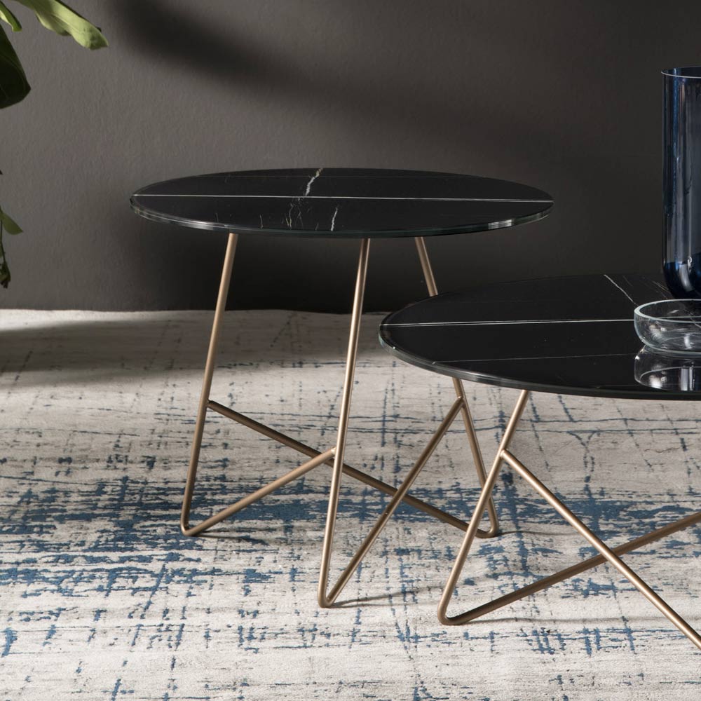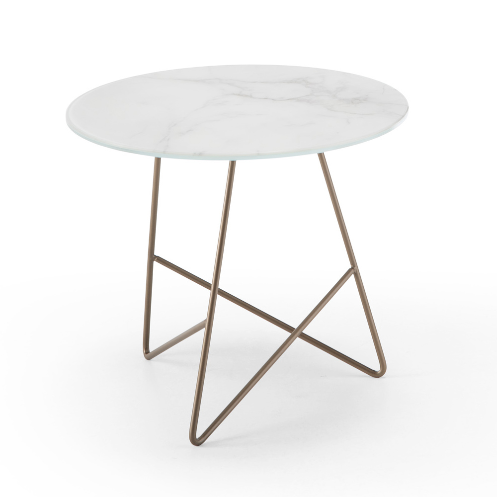 Runder Couchtisch aus Metall und Glasmarmor, Luxusartikel made in Italy.