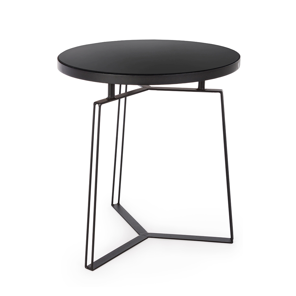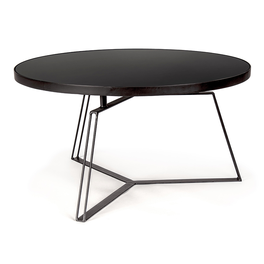 Runder Couchtisch aus schwarzem Stahl und Glasplatte, 2 Größen.