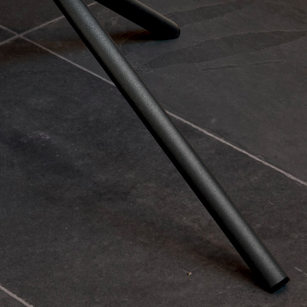 Dieser runde Couchtisch verfügt über eine geprägte graphitpulverbeschichtete Metallgewebestrukturund eine matte Keramikplatte auf der Platte. Die Besonderheit der Ergänzung wird durch die Kreuzung der Beine für ein raffiniertes und klassisches Design gegeben.