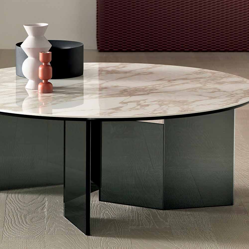 Runder Couchtisch mit Keramikplatte und Rauchglasbeinen - Random