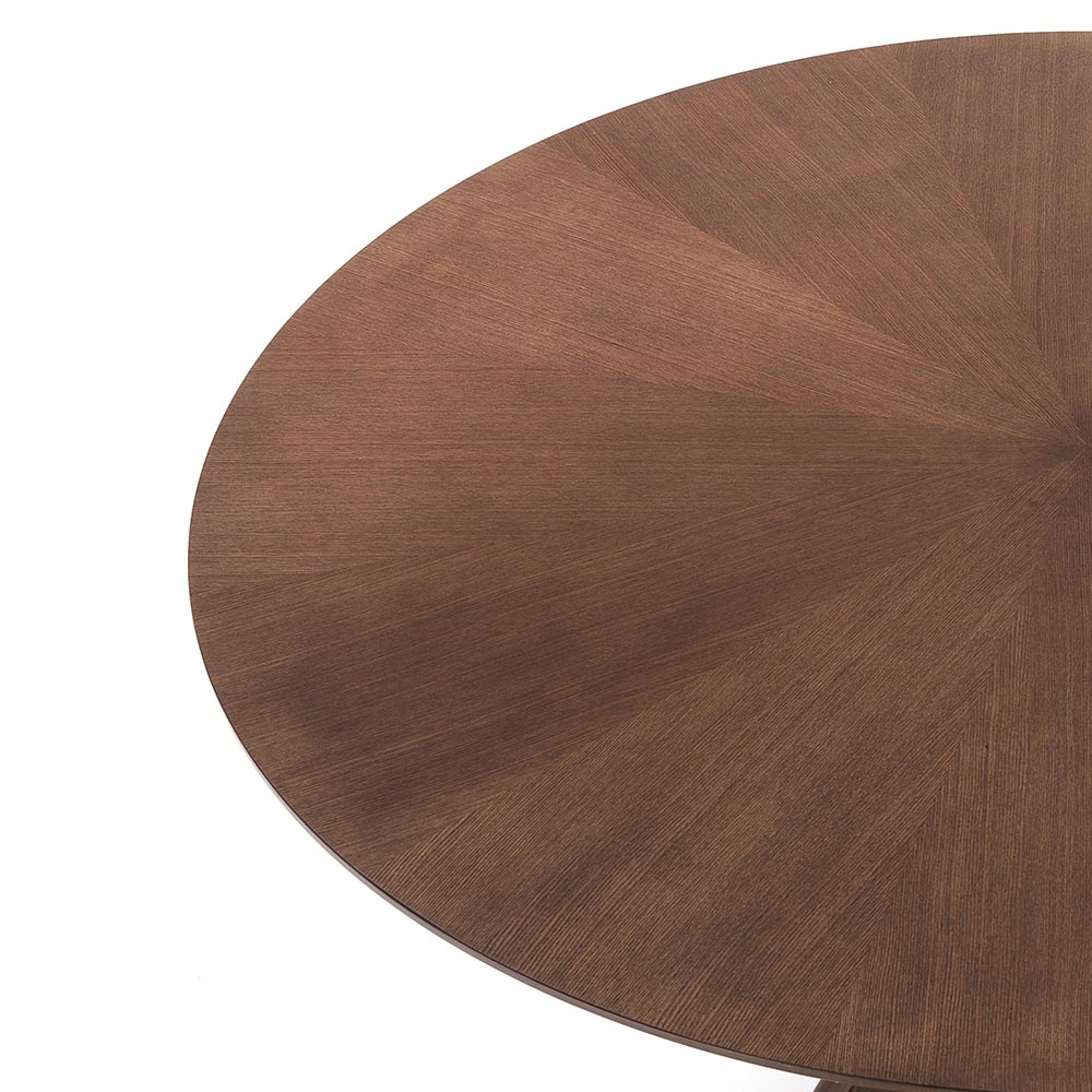 Runder Esstischmit furnierter MDF-Platte (Stärke 18 mm) und Untergestell aus gleichfarbigem Massivholz. Ein Produkt mit einem beeindruckenden und eleganten Stil für diejenigen, die es lieben, ihre Wohnräume mit einem raffinierten und Design-Touch auszustatten. Die Stärke dieses Tisches liegt zweifellos in der besonderen Formgebung des Sockels, die nicht nur die einfache und minimale Ästhetik bereichert, sondern auch dazu beiträgt, dem Produkt Stabilität zu verleihen, um ein hochwertiges Ergebnis zu erzielen, das in Esszimmern oder im Mittelpunkt der Aufmerksamkeit steht moderne Küchen.