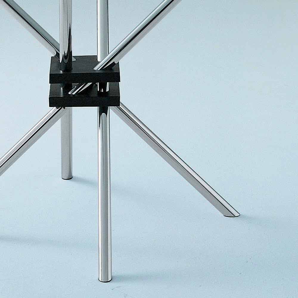 Esstisch mit runder Platte aus gehärtetem Glas (12 mm stark), Untergestell aus verchromtem Stahl und Gelenk aus schwarz lackiertem Aluminiumguss.Einfachheit und Design sind die besonderen Merkmale dieses modernen Einrichtungsaccessoires, das vollständig in Italien hergestellt wurde und konzipiert und entworfen wurde, um dank seiner vielseitigen Persönlichkeit und seiner extremen Wesentlichkeitdas Zentrum jedes Esszimmers oder jeder Küche mit einem zeitgenössischen Stil zu erobern. Die Glasplatte verleiht dem Produkt Eleganz und Charakter, während die Stahlbasis dank der Verwendung hochwertiger Materialienein solides und langlebiges Produkt gewährleistet. Das Ergebnis ist ein nüchterner und eleganter Esstisch, der jede stilistische Situation mit einer exklusiven und raffinierten Note charakterisieren kann.
