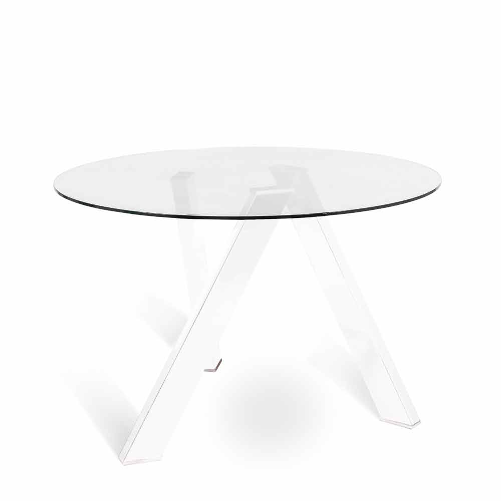 Tisch mit Sockel aus weiß lackiertem Metall oder Stahl und Tischplatte aus transparentem gehärtetem Glas.https://www.viadurini.ch//data/prod/img/tavolo-da-pranzo-tondo-con-top-in-vetro-adamo-design-moderno-2.jpg451.83640254564.79545693112.9590543920InStockRunde TischeViadurini Living000.02016-04-12 12:13:40