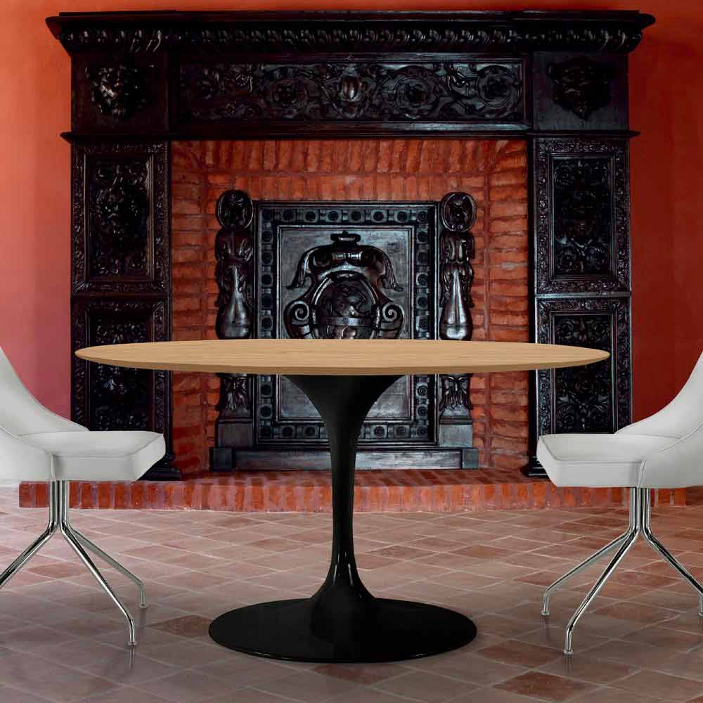 Esstisch mit runder Platte aus HPL-Laminat, hergestellt in Italien, hohe Qualität.
