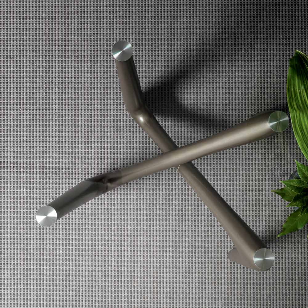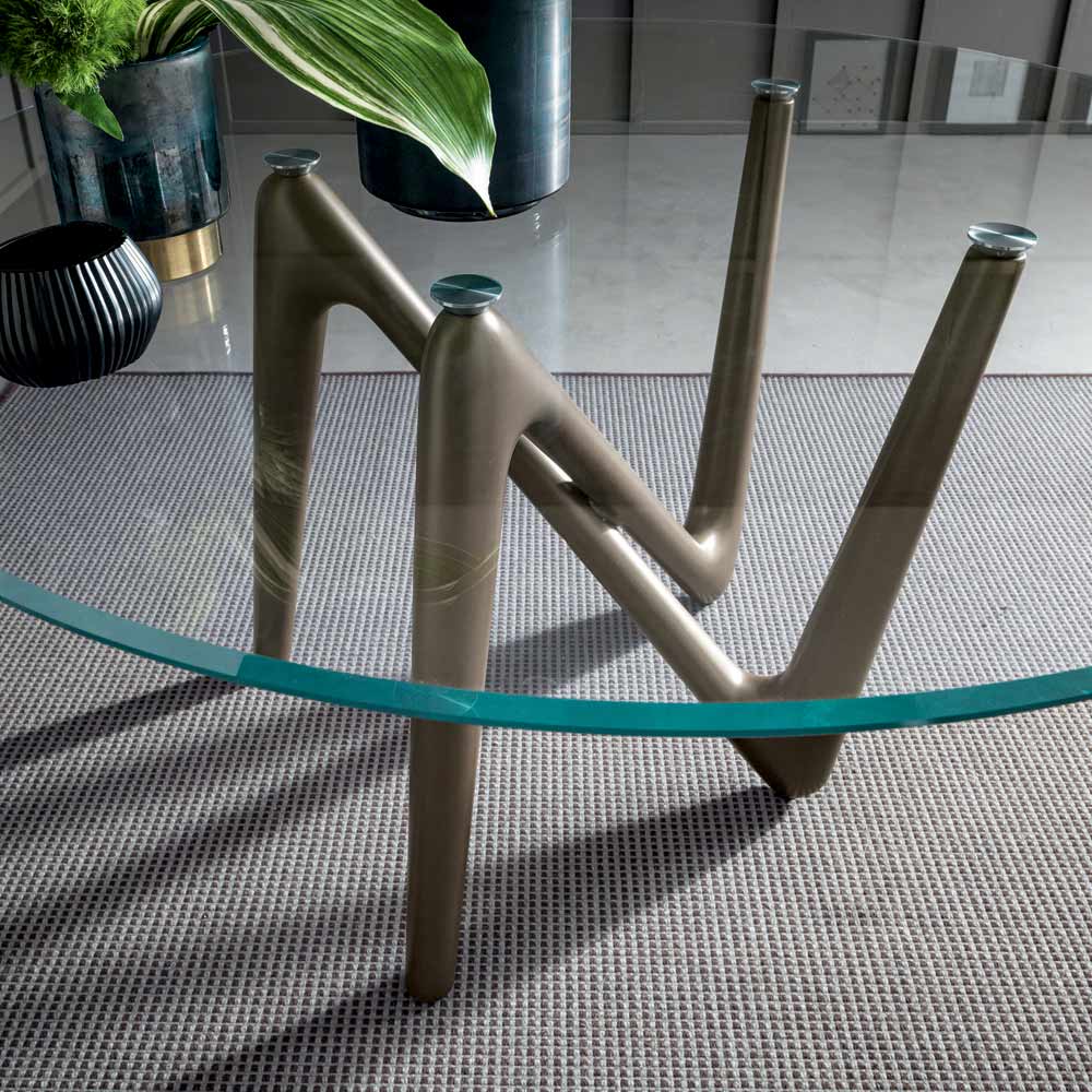 Seine Besonderheit wird durch sein dynamisches und innovatives Image sowohl in Bezug auf Ästhetik als auch Funktionalität gegeben: Die Struktur verschlingt sich , um die Platte leicht zu stützen und ihr ein skulpturales und raffiniertes Aussehen zu verleihen.