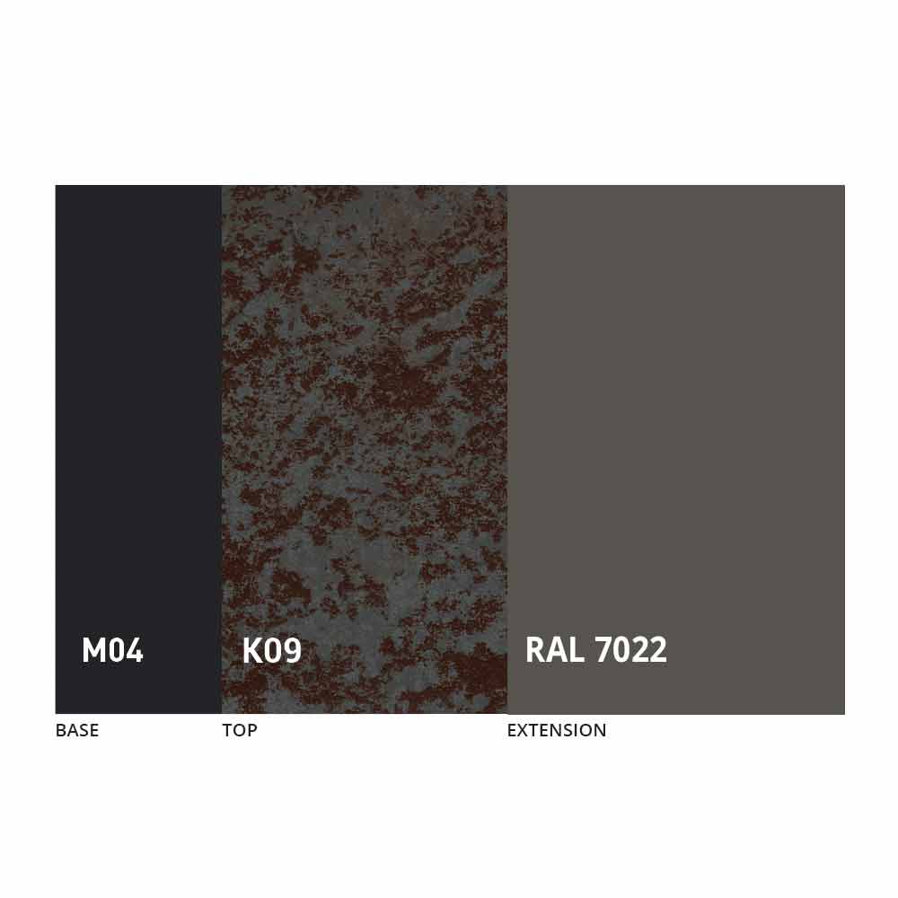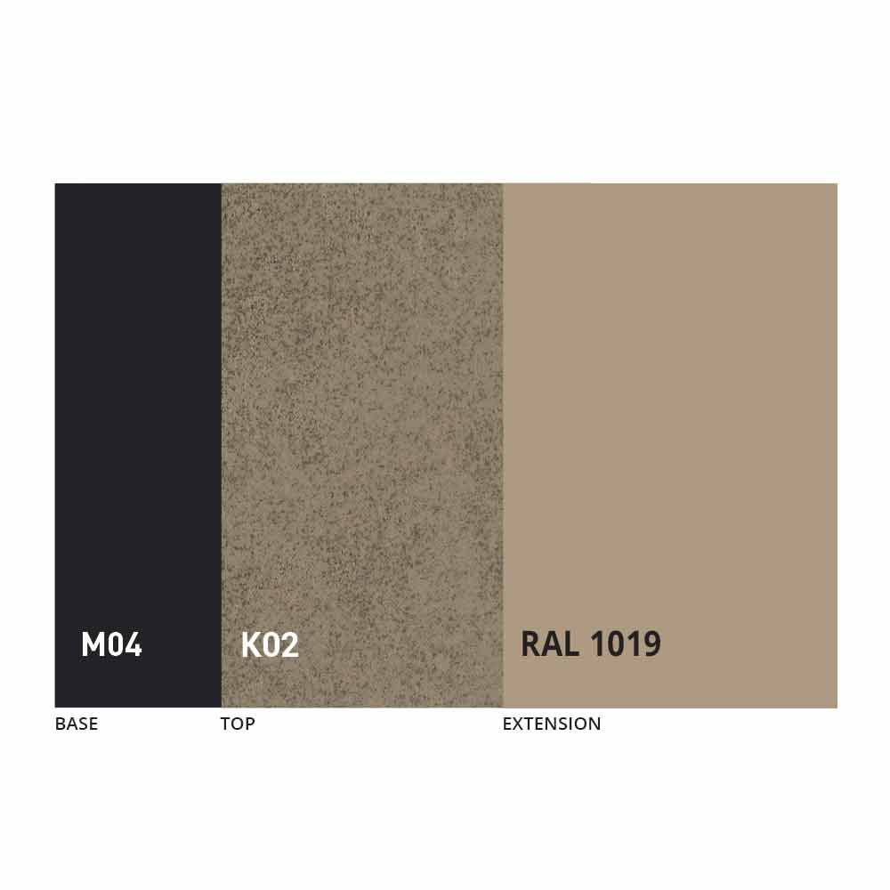 Die Platte und das Untergestell des Tisches können mit verschiedenen Materialien und Musteroberflächen oder RAL-Lackierungen individuell gestaltet werden. Für Informationen kontaktieren Sie uns bitte über das entsprechende Formular " Informationen anfordern" .