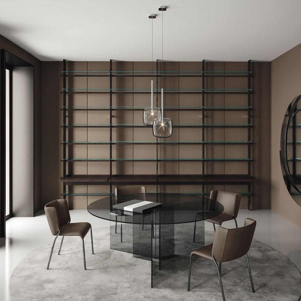 Esstisch komplett aus ultraresistentem Glas mit runder Platte . Eine Ergänzung mit raffiniertem Charakter, die aus einem 100% Made in Italy-Produktionsprozess stammt, dank erfahrener Handwerker, die Experten in der Glasverarbeitung sind, einem einzigen Material, das einem wertvollen Designtisch Leben einhaucht.