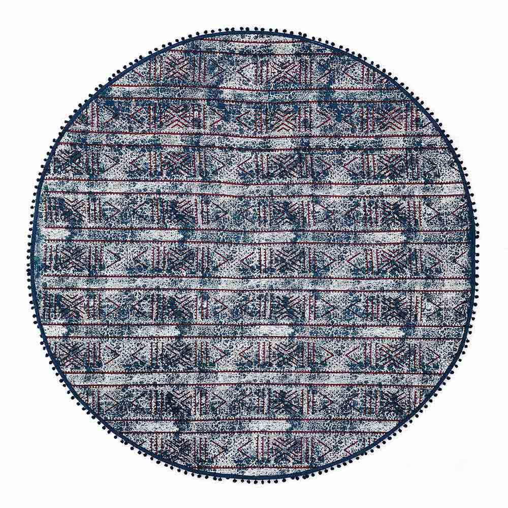 Runder Teppich im Ethno-Design aus Baumwoll-Kelim.