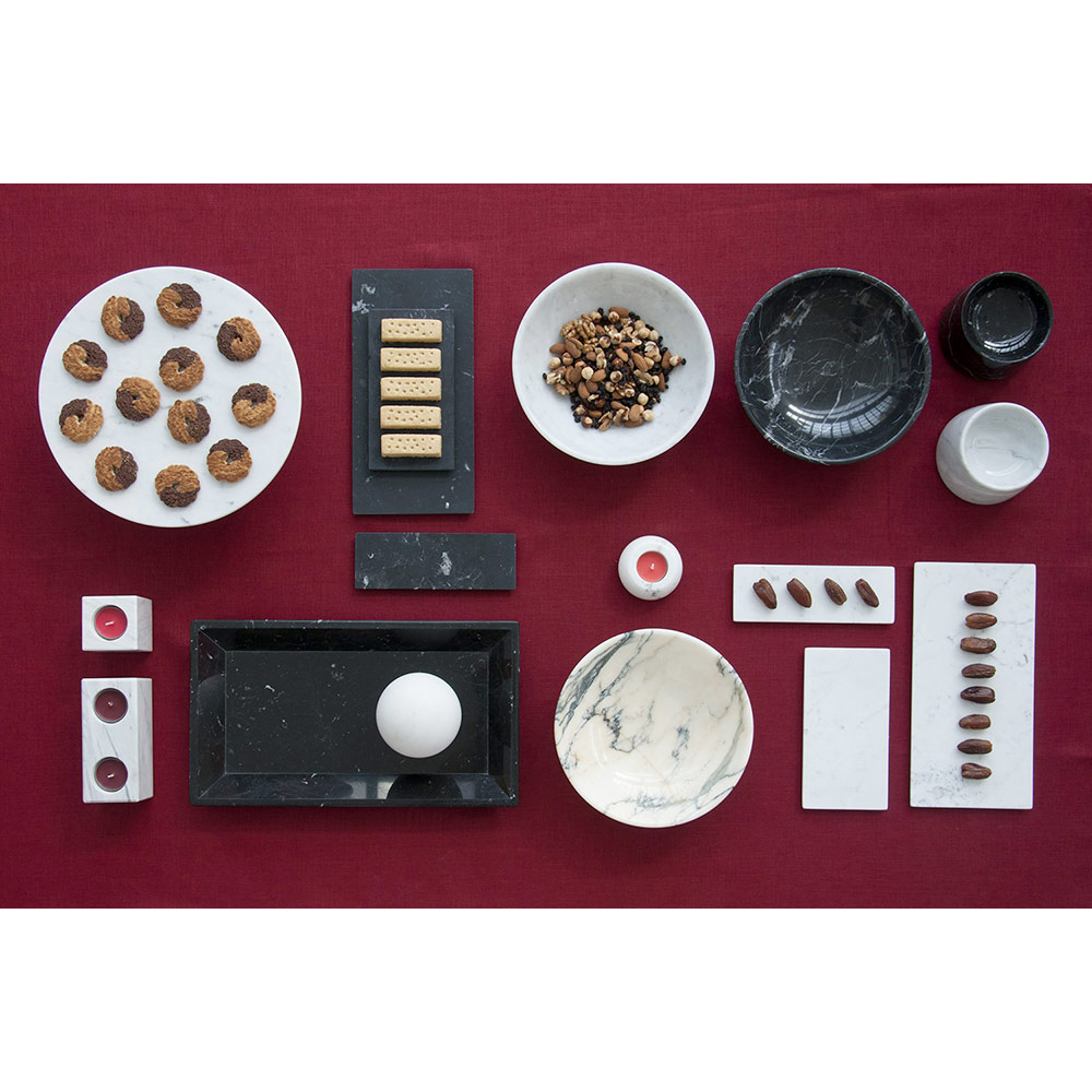 Der weiße Carrara-Marmor, der für die Herstellung dieser Produkte verwendet wird, wird vom Steinbruch Poggio Silvestre geliefert, einer Quelle für Marmor erster Qualität, der seit dem letzten Jahrhundert klassifiziert wurde, während der schwarze Marquinia-Marmor aus spanischen Steinbrüchen gewonnen wird und sich durch seine unregelmäßigen Farbadern Weiß oder Weiß auszeichnet Hellgrau, das dem Marmor ein originelles und modernes Aussehen verleiht.