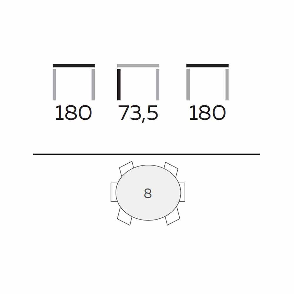 und Marmoreffekt , das Platz für bis zu 8 Personen bietet. Die Basis besteht aus handgeölten Eschenholzstreifen in schwarzgrauem Finish und ist genau das Element, das den Tisch dank auszeichnet die starken Linien, die dem Produkt und dem gesamten Raum Dynamik und Bewegung verleihen.