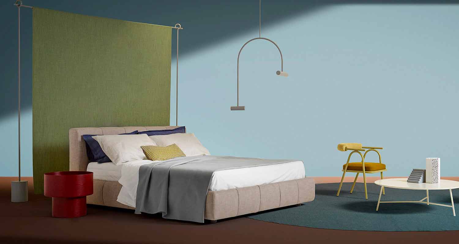 kreisförmige Platte , die in zwei Hälften geteilt ist und zwei verschiedene Höhen aufweist: eine höhere und eine tiefere, die mehr Platz bietet, um Zeitschriften, Bücher, Fernbedienungen usw. unterzubringen.